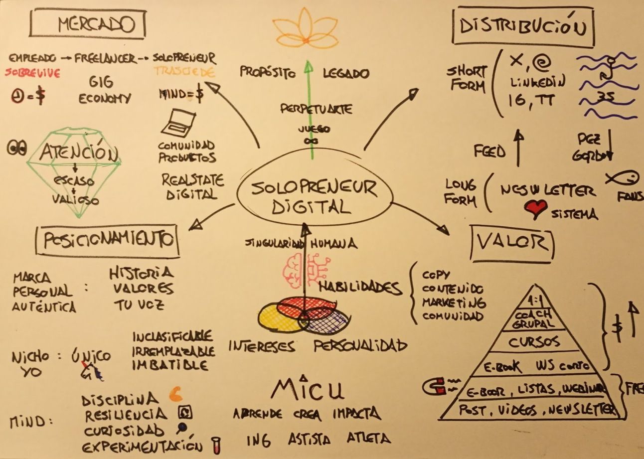 Este mapa no es estático. Es una herramienta viva. Muestra que ser solopreneur no es "postear en redes". Es un sistema.